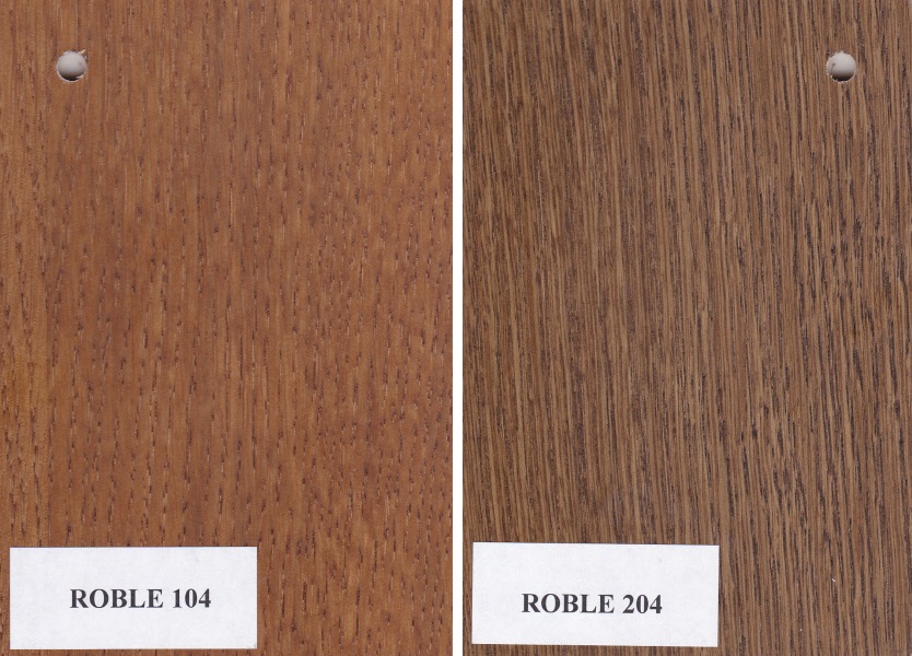 El color 104 y el 204 se pueden fabricar en distintas maderas, roble, haya y cerezo. El color variara en función de la madera empleada. El material de consulta para ver el tono final es el NUEVO muestrario de MADERA.