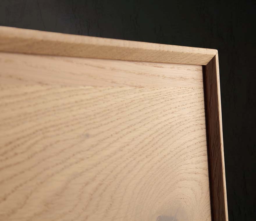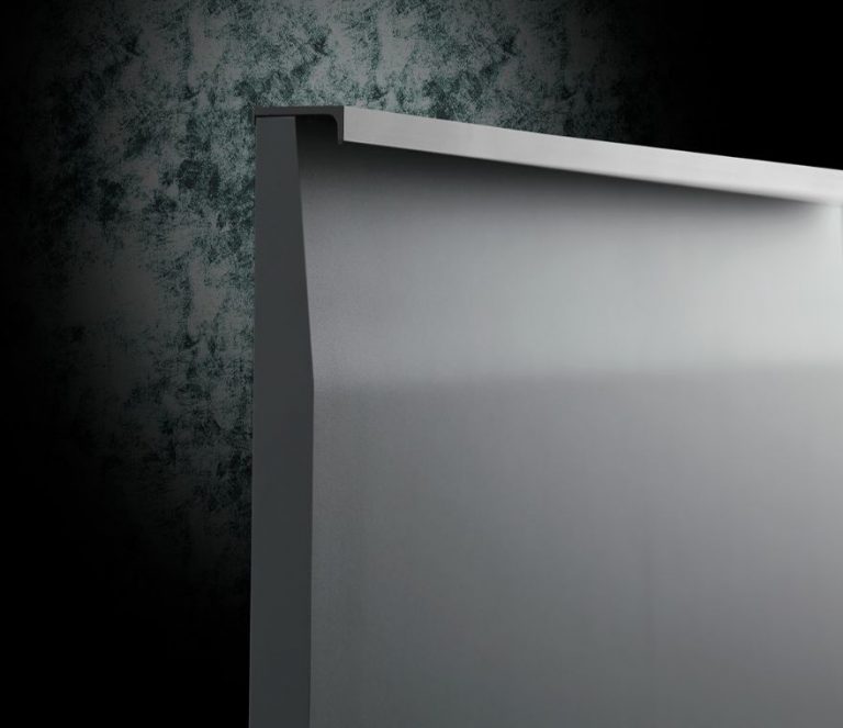 La peculiaridad de Bezel es el ligero y gradual estrechamiento en su parte superior al unirse con el tirador, consiguiendo un tirador visible pero discreto y una excelente ergonomía.